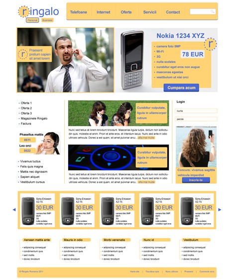 Image-heavy layout for a fictional layout for mobile phone company's website.